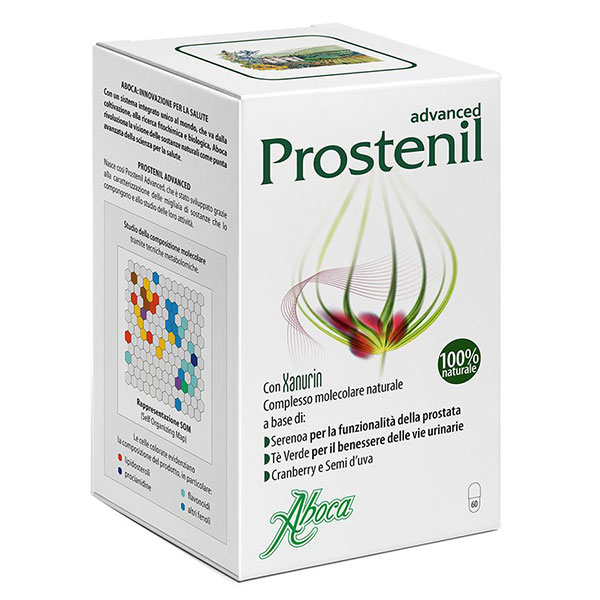 Prostenil Advanced si caratterizza per la presenza del complesso molecolare naturale Xanurin, costituito da varie sostanze naturali quali lipidosteroli (acidi grassi e fitosteroli), polifenoli, procianidine e flavonoidi, che derivano da serenoa, cranberry, semi d’uva e tè verde. In particolare per la serenoa, la Ricerca Aboca ha sviluppato un esclusivo estratto utile per la funzionalità della prostata, che si caratterizza non solo per il contenuto di lipidosteroli ma anche di polifenoli. Questo estratto, insieme al tè verde, svolge anche una pronta azione sulla funzionalità delle vie urinarie. L’estratto di semi d’uva coadiuva il microcircolo e la protezione dai radicali liberi. Completano la formulazione gli oli essenziali di cajeput e ginepro ad azione antiossidante.