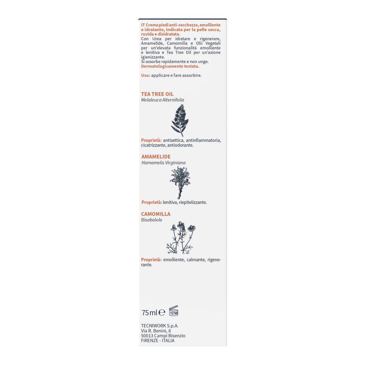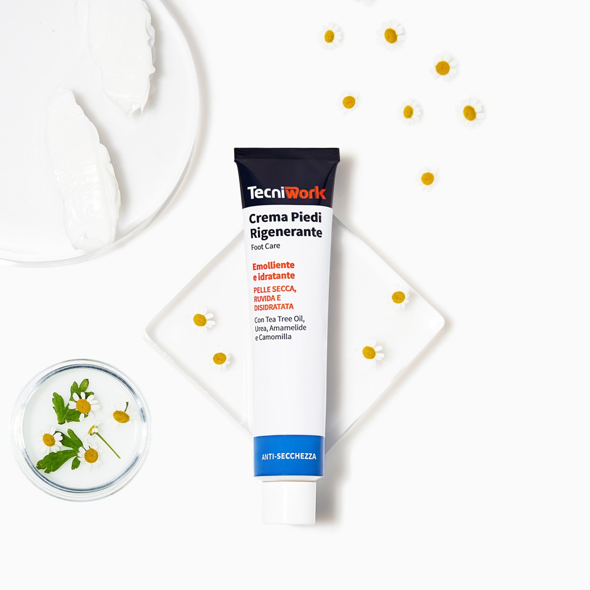 La crema idratante e rigenerante per piedi è la soluzione quotidiana per combattere pelle secca, ruvida e disidratata. La formula ricca combina principi attivi naturali ad alto potere emolliente e rigenerante per ripristinare il livello ottimale di idratazione cutanea.