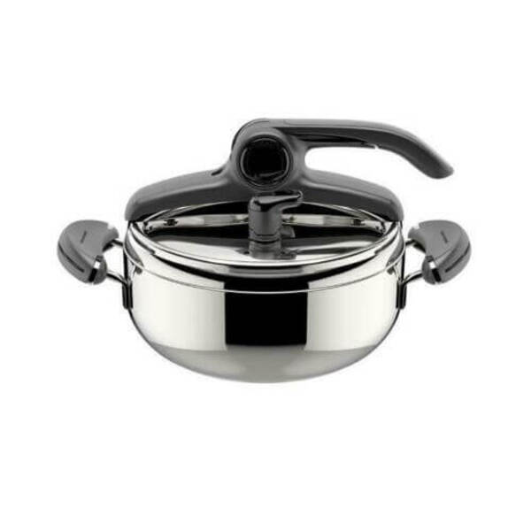 La Pentola a pressione INOXFIRE LAGOEASY’UP rappresenta oggi un’innovazione senza precedenti grazie all’esclusiva LagoEasy’Up® Technology, il nuovo sistema di apertura brevettato, facile da aprire con una sola mano ed in un solo movimento. La pentola a pressione è uno strumento versatile perché consente la cottura a vapore, ad immersione e a rosolatura. è salutare, perché cucinando in pentola a pressione si preservano fino al 35% di vitamine e di sali minerali in più. è veloce, perchè riduce i tempi di cottura fino al 50%. E’ inoltre dotata di ben 6 sistemi di sicurezza e della valvola a scarico verticale del vapore. Il fondo a 3 strati IRRADIAL® PLUS è adatto a tutti i piani di cottura, induzione inclusa, per una perfetta diffusione del calore. Made In Italy.