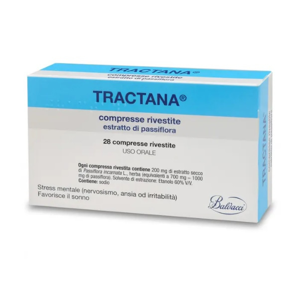 Medicinale di origine vegetale d’uso tradizionale indicato per alleviare i sintomi lievi di stress mentale, come ad esempio il nervosismo, l’ansia o l’irritabilità e per favorire il sonno. Il prodotto è un medicinale di origine vegetale d’uso tradizionale da utilizzare per indicazioni specifiche basate esclusivamente sull’impiego di lunga data. Tractanaè indicato negli adulti e nei bambini di età superiore a 12 anni.